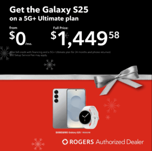 Black Friday on now. Get Samsun S25 from $0/mo on a 5G + Ultimate plan. Visit the nearest Planète Mobile Rogers store today. https://www.planetem.com Offer…