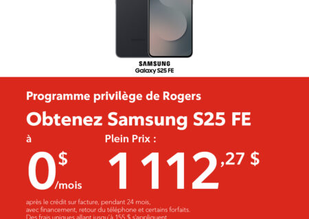 Des avantages au travail qui comptent. Obtenez Samsung Galaxy S25 FE à partir de 0 $/mois avec un forfait Infini de Rogers avec le programme…
