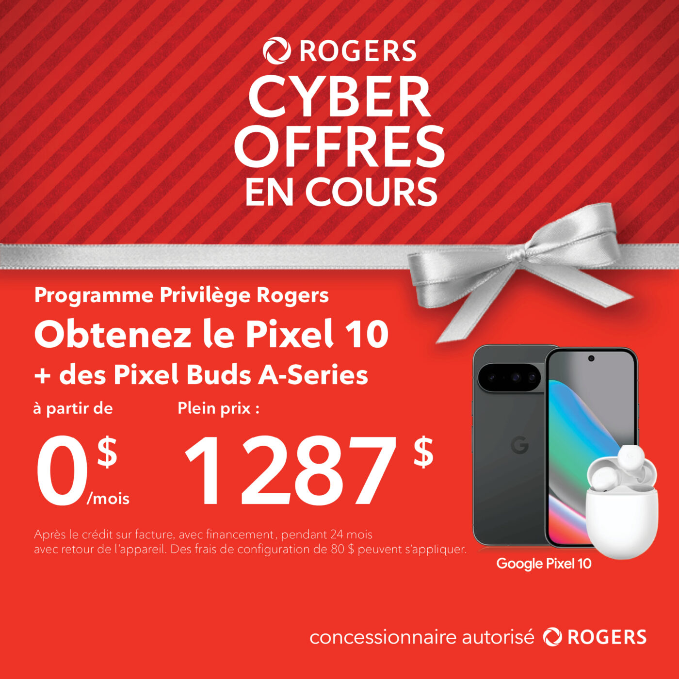 Cyber Offres en cours. Obtenez le Pixel 10 avec un forfait Suprême 5G+ à partir de 0 $/mois et obtenez GRATUITEMENT une paire de Google…
