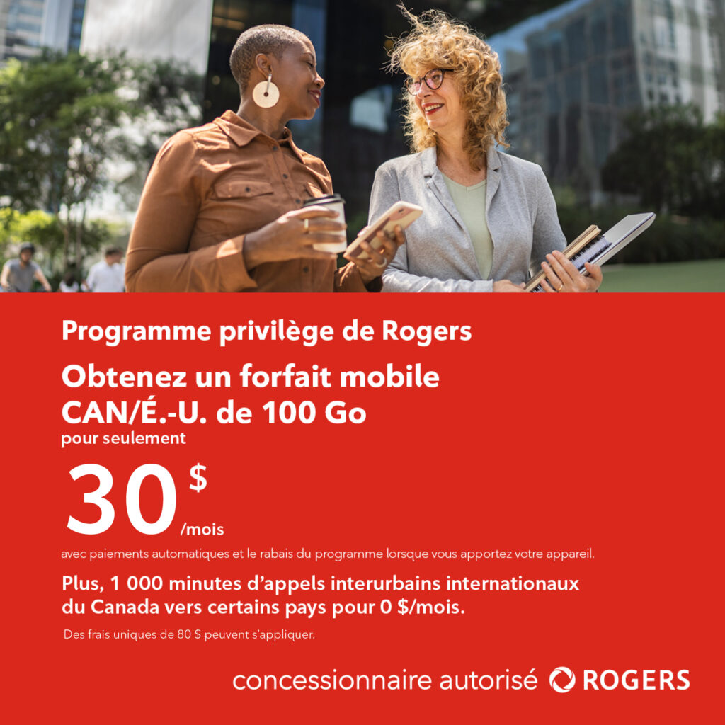 Économisez jusqu’à 30 $ par mois sur certains forfaits Infini de Rogers de Rogers et profitez d’offres incroyables sur les appareils les plus populaires grâce au Programme privilège de Rogers.